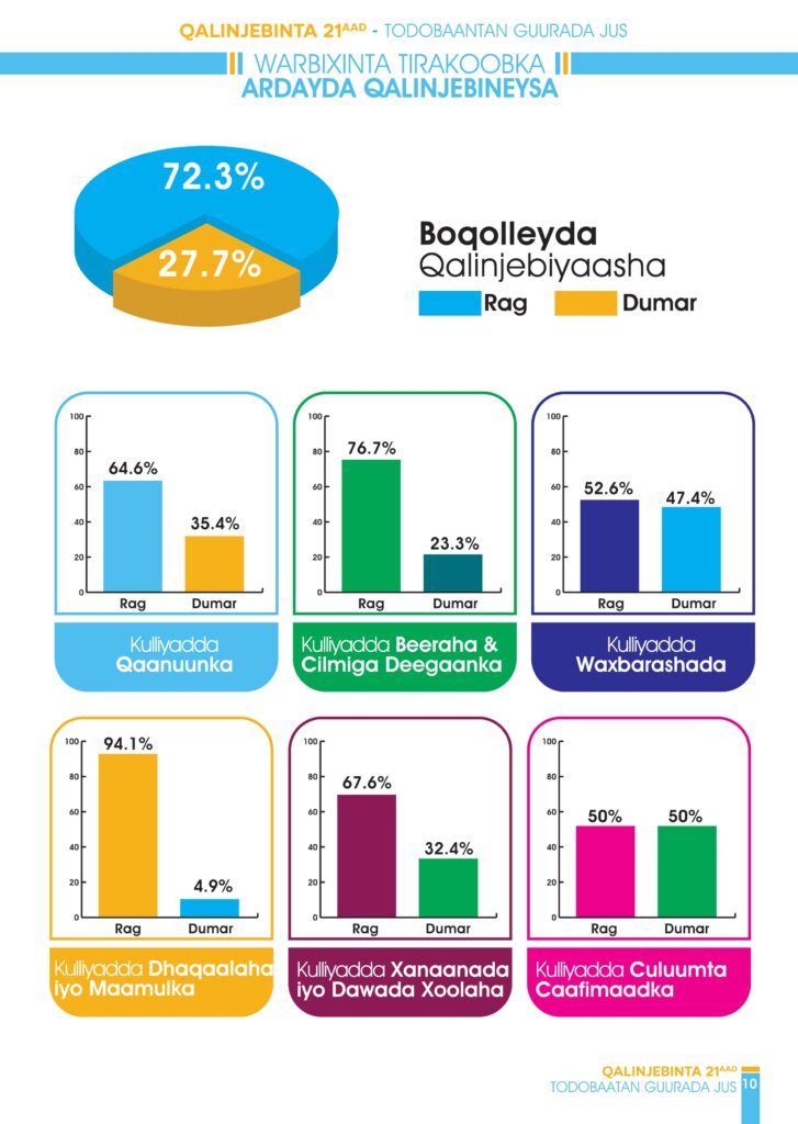 The outbreak of civil war in Somalia led to the imminent collapse of education system in Somalia, but with stabilizing of the State, the higher education sector is experiencing exponential growth. There are now close to 50 higher education institutions (HEIs) of different sizes and different capacities functioning across the country and enrolling over 50,000 students. With limited resources available to the government, the HEIs are forced to almost exclusively rely on funding from students’ fees, which has been considered to be very high.