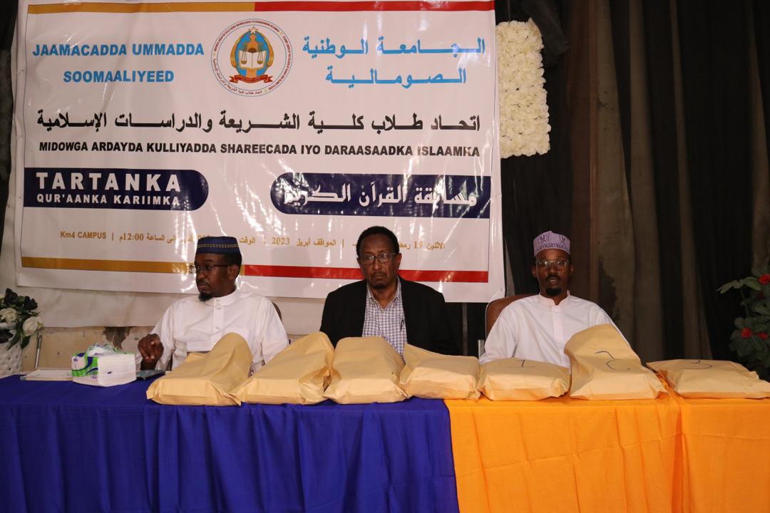 Muqdisho, 10 – 04 – 2023:- Kulliyada Shareecada iyo Daraasaatka Islaamka ayaa qabatay tartan Qu’aanka Kariimka ah oo ay soo qaban qaabiyeen midowga Ardayda Kulliyadda ayagoo kaashanaya Maamulka iyo Bareyaasha Kulliyadda, tartanka ayaa loo qabtay ardayda Kulliyadda Shareecada waxaana ka qayb galay 7 arday oo usoo gudubtay Tartanka kama dambaysta ah.
