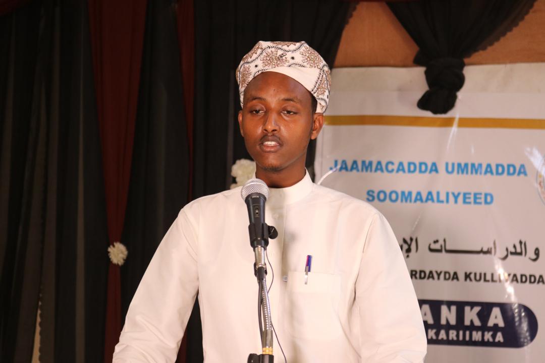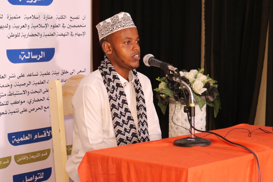 Hormuudka Kulliyadda Shareecada Dr. C/nuur Faarax Cali oo daah furay tartanka ayaa u mahad celiyay dhammaan intii ka qayb qaadatay Tartanka, Hormuudka ayaa sidoo kale ka hadlay Fadliga Qur’aanka iyo muhiimadda uu leeyahay Tartanku.