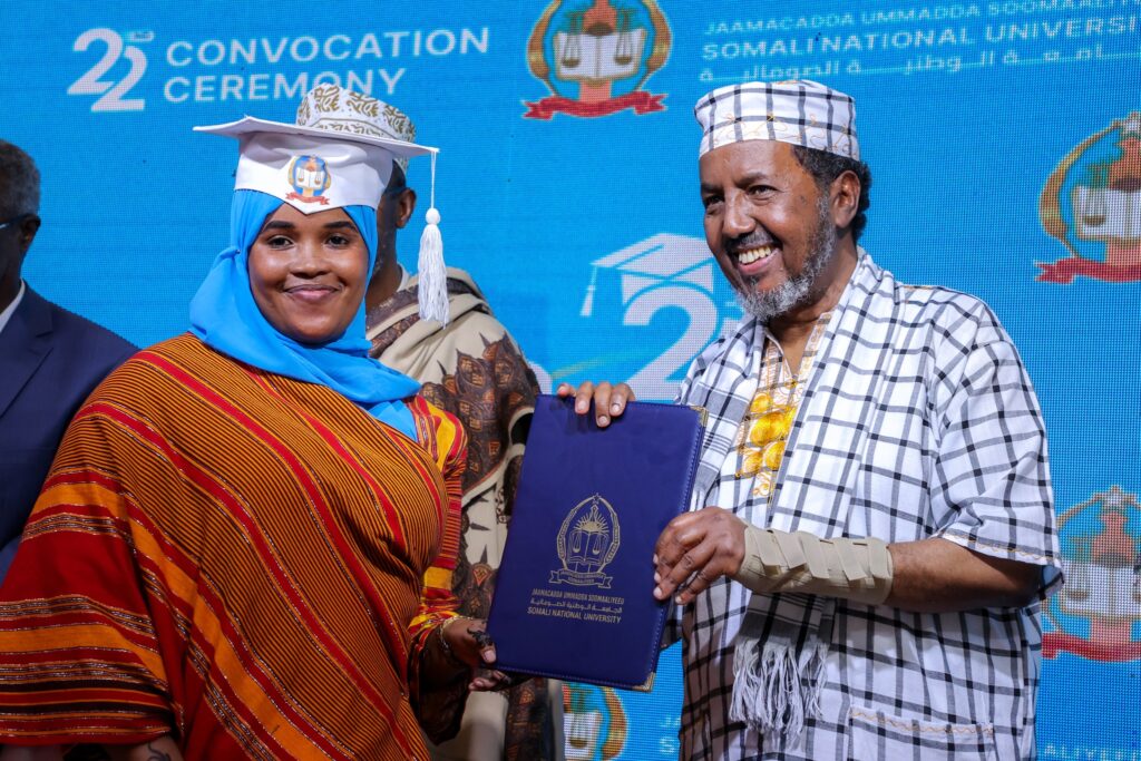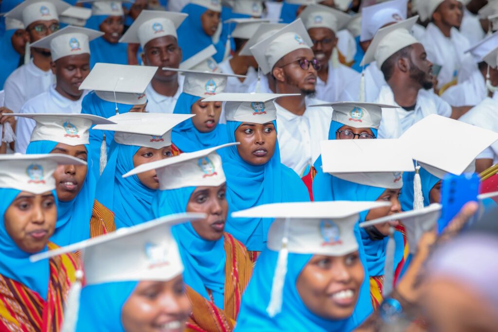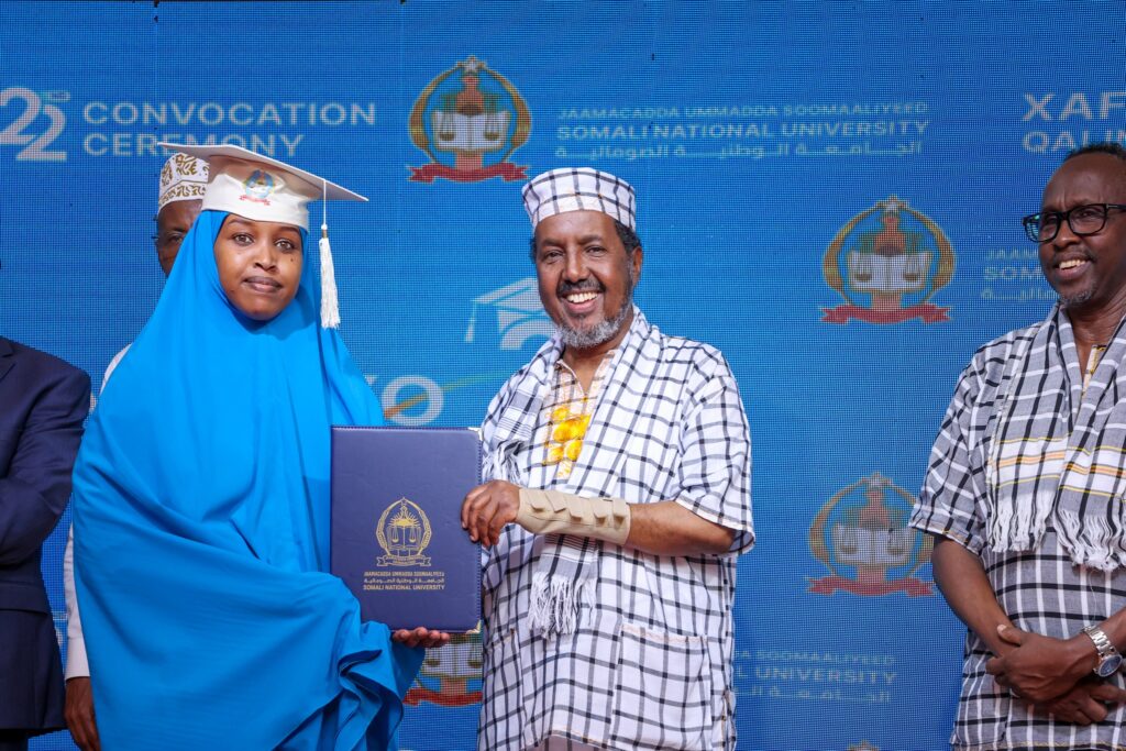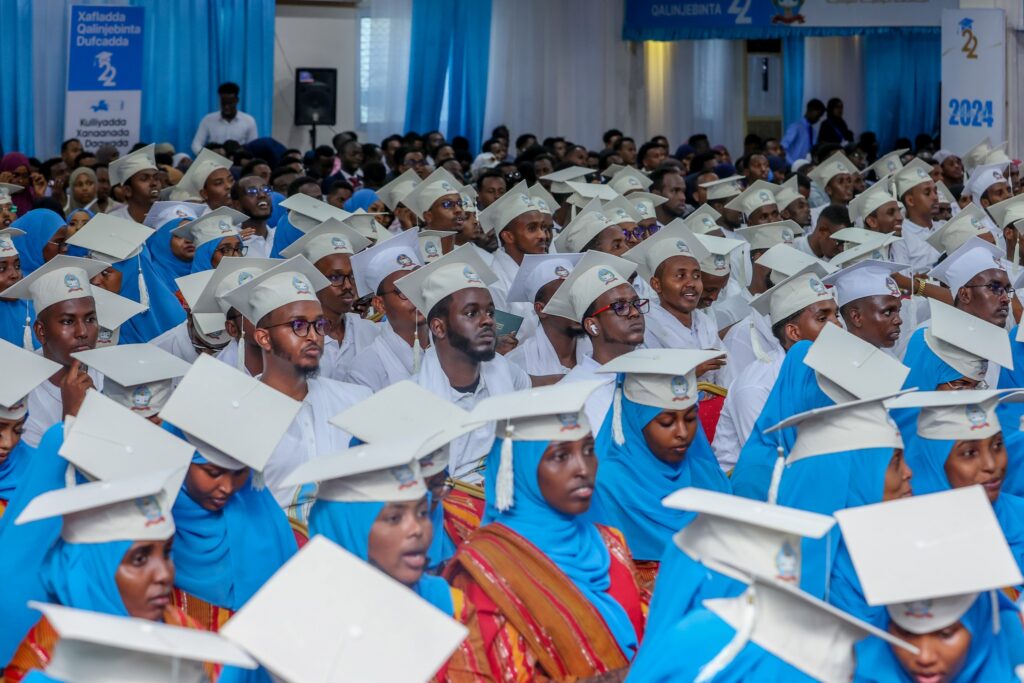 MUQDISHO, Maarso 09, 2024: Munaasabadda qalinjabinta dufcadda 22-aad ee Jaamacadda Ummadda Soomaaliyeed ayaa lagu qabtay magaalada Muqdisho ayaa waxa ka qay galay mas`uuliyiin kala duwan oo ka tirsan Dowladda federaalka Soomaaliya oo uu ugu horeeyo Madaxwaynaha dalka Mudane Xasan Sheekh Maxamuud, Wasiirka wasaaradda Waxbarashada HTS, Xildhibaano, iyo Mas`uuliyiin kale.