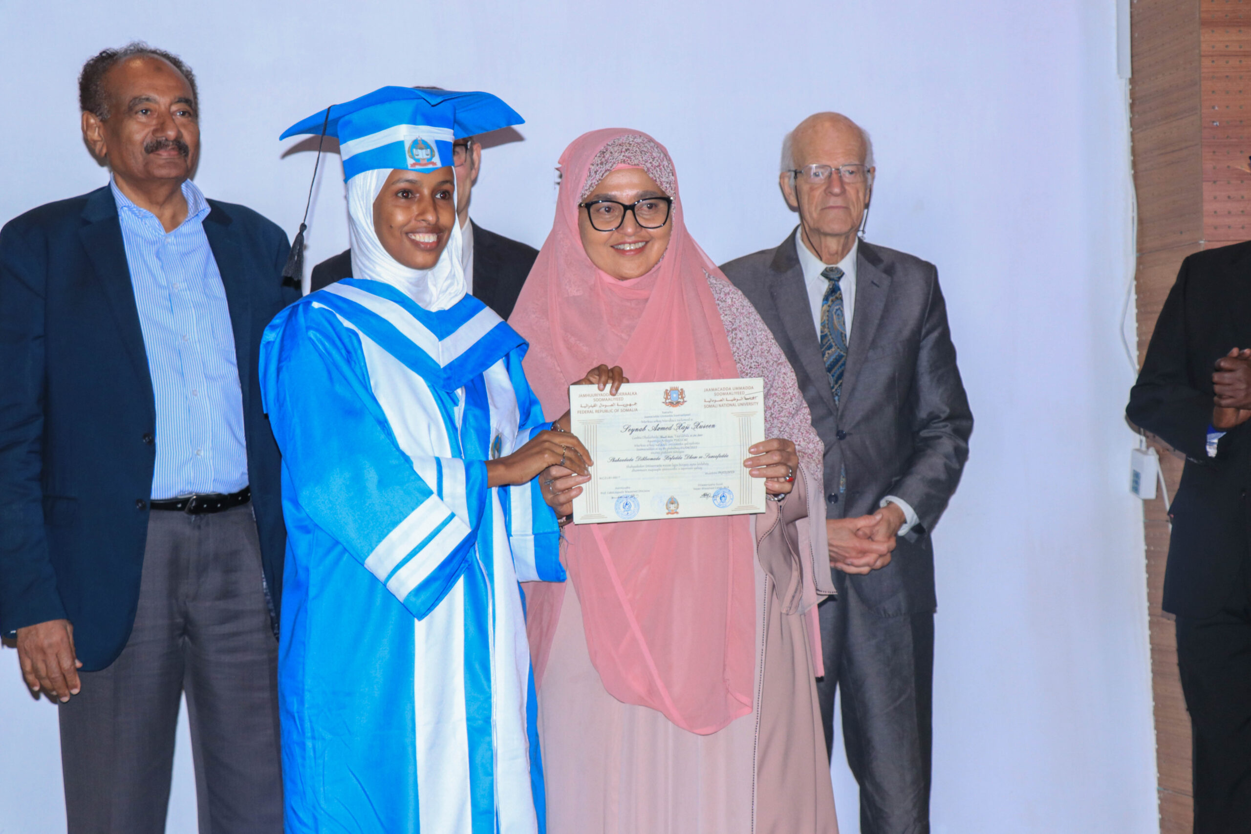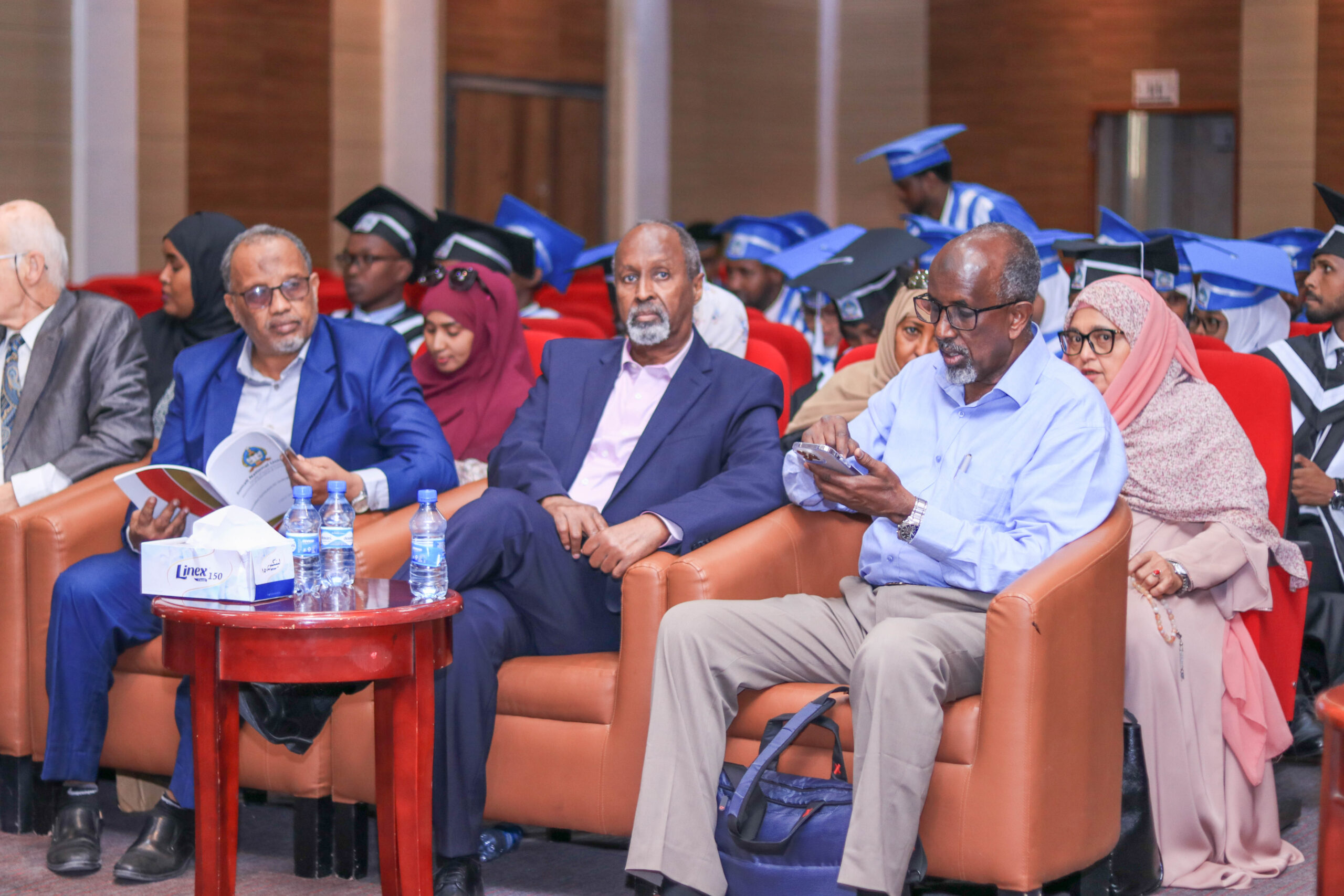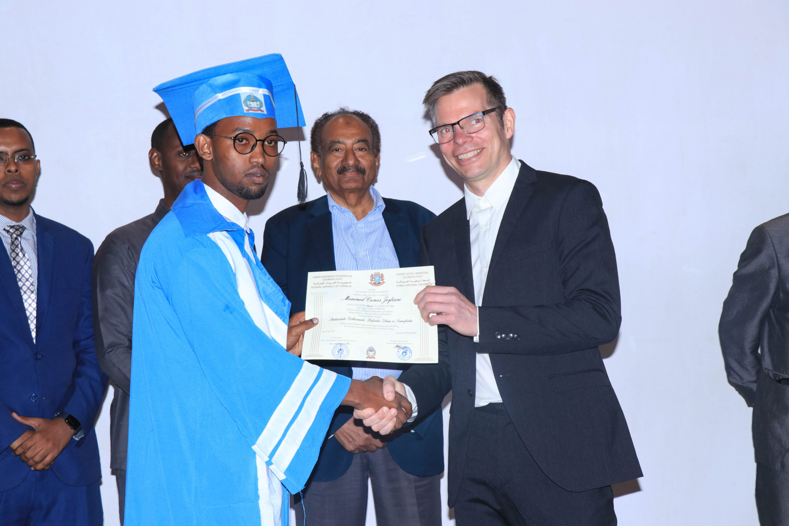 Waxaa ka qaybgalay munaasabada Raktar-ka Jaamacadda Ummadda Soomaaliyeed (JUS), Dr. Xassan Cumar Mahadallah, Agaasimaha Tacliinta Sare Wasaaradda Waxbarashada, Hiddaha iyo Tacliinta Sare, Mudane Ismaciil Yuusuf Cusmaan, Agaasimaha Waaxda Shaqaalaha iyo Tababarada Mudane Cabdirixiin Ciise Caddow, Hormuudka kulliyadda Culuumta Bulshada JUS Dr. Cabdulqaadir Maxamed Diesow, Raktarkii hore JUS, Prof. Maxamed Axmed Jimcaale, Professor Kaarle Nordenstreng oo ka tirsan Jaamacadda Tampere ee dalka Finland, iyo Masuuliyiin ka socday IMS, FOJO Media Institute, macalimiin iyo maamulka iyo Shaqaalaha Jaamacadda Ummadda.