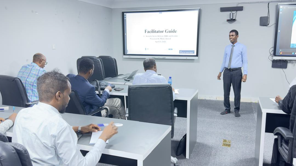 From April 23-31, 2024, the UNDP, in partnership with SNU, concluded an impactful eight-day “Training of Trainers” (ToT) program. This initiative equipped eight lecturers (1 female, 7 male) from BRA and Federal Member States with essential skills in gender, conflict, and security, advancing the Women, Peace, and Security (WPS) agenda. Using a participatory approach with adult learning techniques, the facilitator employed diverse methods like group discussions, practical exercises, and evaluations to ensure engaging and hands-on learning. Key achievements include the successful training of lecturers on WPS principles, curriculum development, and mentorship. These educators are now empowered to deliver the WPS program, mentor peers, and foster peace and inclusivity in their communities.