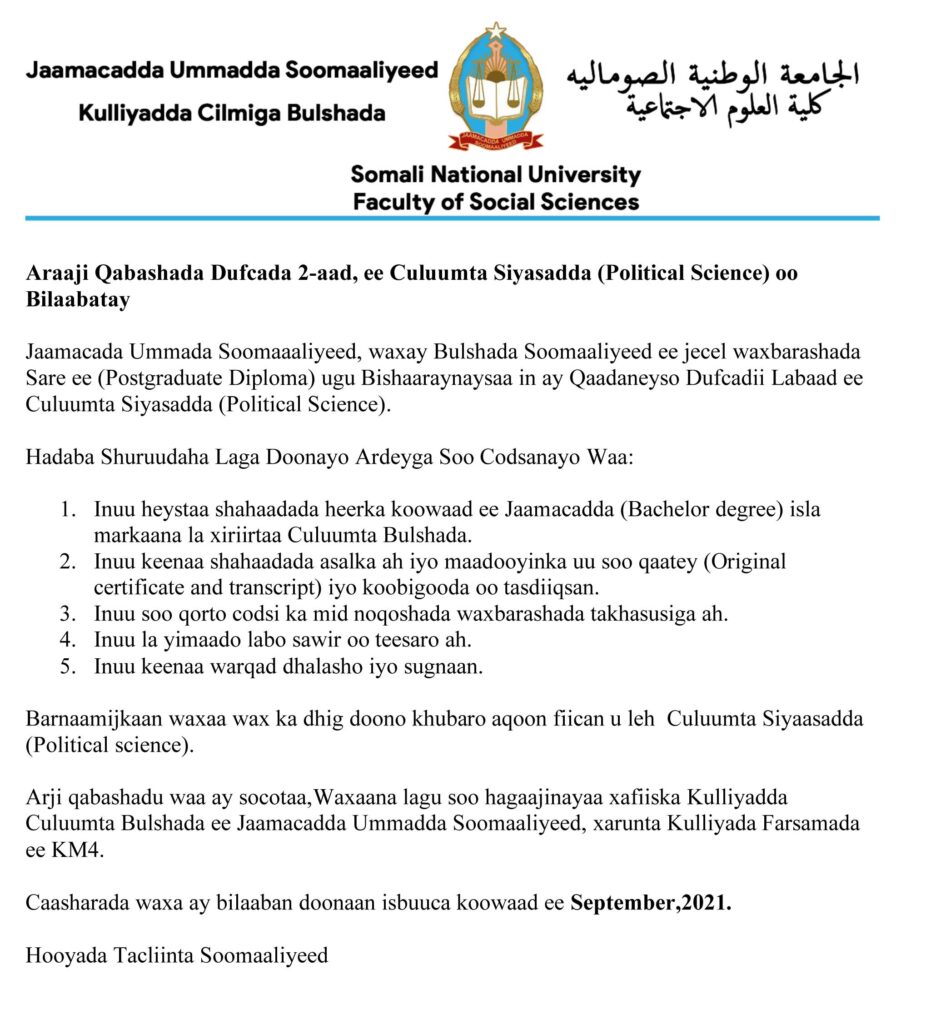 Araaji Qabashada Dufcada 2-aad, ee Culuumta Siyasadda (Political Science)…