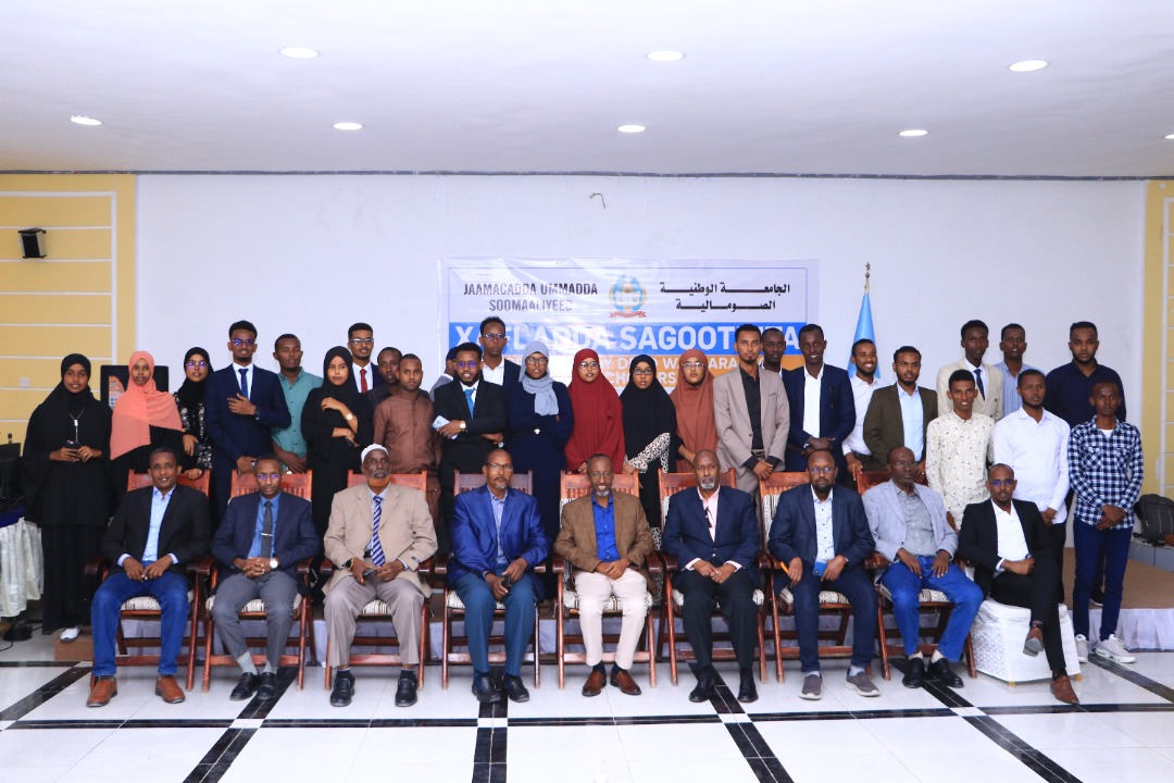 Muqdisho, Aug 31, 2022: Jaamacadda Ummadda ayaa xalay kulan casho sagootin iyo dardaaran ah u samaysay 29 arday oo deeq waxbarasho u aadaya wadamada Talyaaniga, Türkiye, netherlands Japan iyo India. Munaasabada waxaa ka qaybgalay Wasiirka Wasaaradda Waxbarashada, Hiddaha Iyo Tacliinta Sare ee XFS mudane, Faarax Sheekh Cabdulqaadir, Raktarka Jaamacadda Ummadda Soomaaliyeed (JUS) Dr. Xasan Cumar Mahadalla, Raktar xigeenka Arrimaha Waxbarashada Prof. Aadan Guuleed Shabeel, qaar ka mid ah Hormuudyada, Asgaasimayaasha maamulka, macalimiin iyo martisharaf kale.