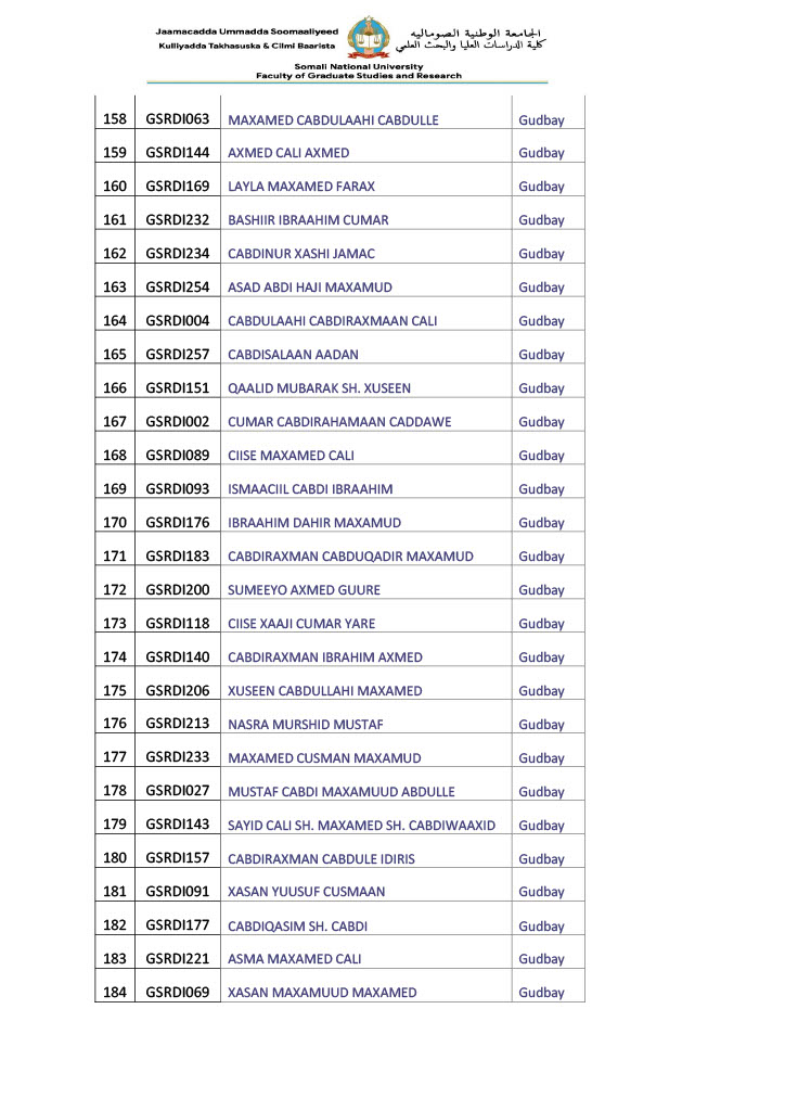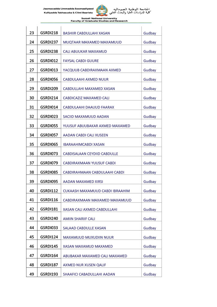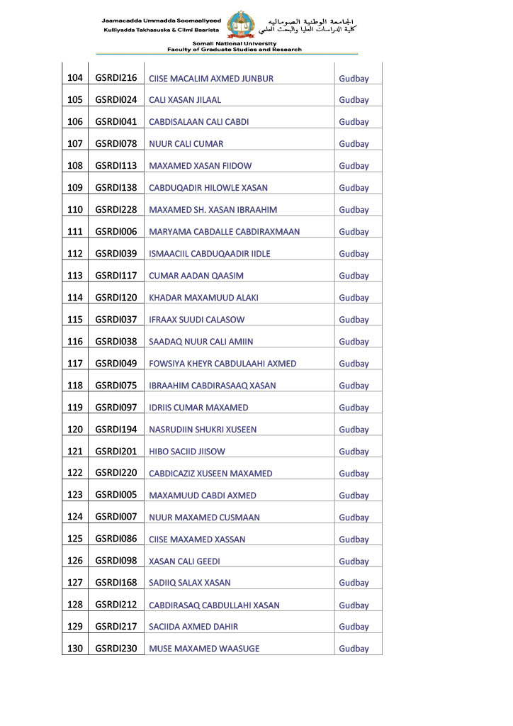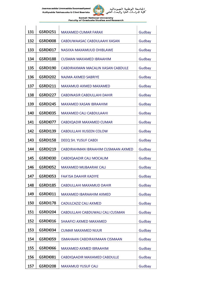 - Arday kasta waa inuu Xafiiska kulliyadda Takhasusaadka & Cilmi baarista keensadaa