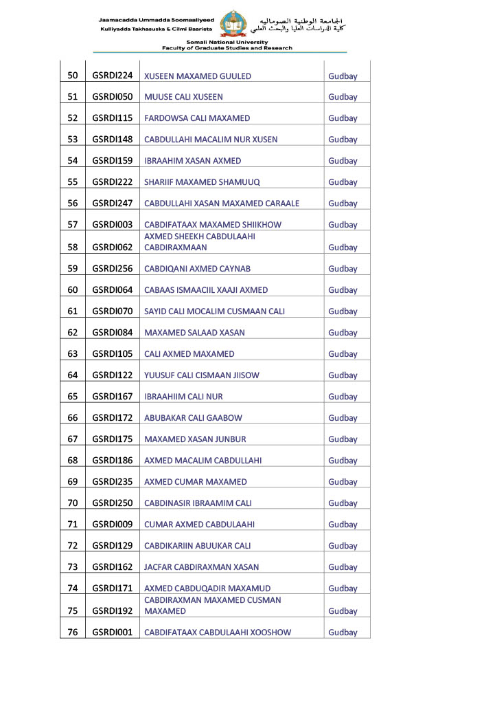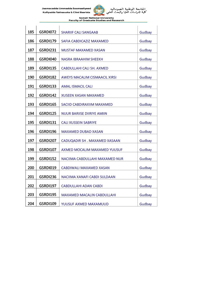 - Arday kasta waa inuu keenaa shahaadada heerka 1aad ee Jaamacadda asal & Copy (Shahaadada waa inay ahaataa mid tasdiiqsan)