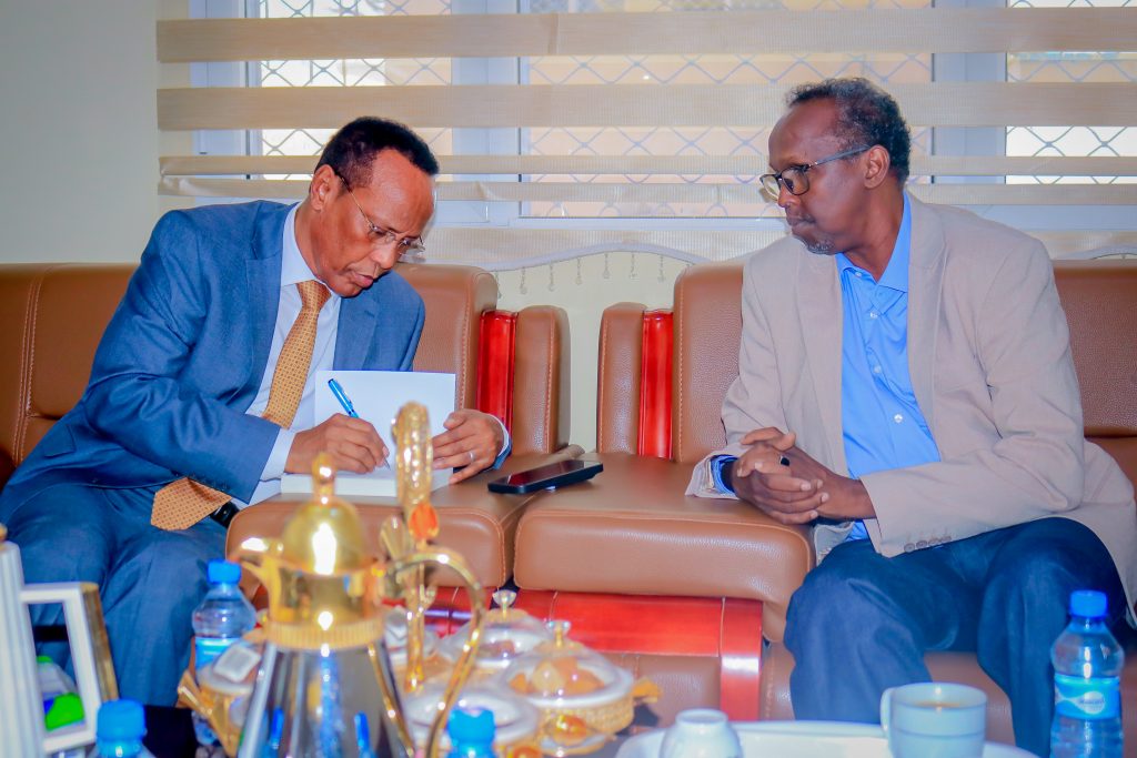Ra’iisul Wasaarihii hore ee Soomaaliya, Mudane Prof. Cali Maxamed Geeddi ayaa booqasho ku yimid xarunta dhexe ee Jaamacadda Ummadda Soomaaliyeed (JUS), waxana uu kulan gaar ah kula yeeshay Raktarka Jaamacadda, Mudane Prof. Xasan Cusmaan Gacal.
