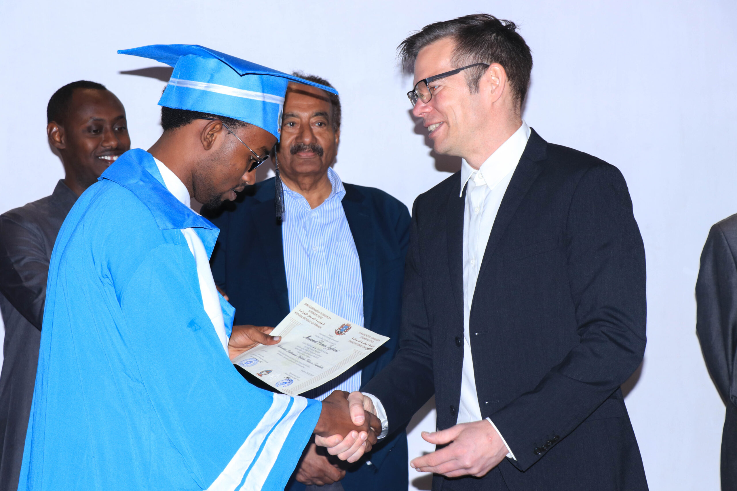 Waxaa ka qaybgalay munaasabada Raktar-ka Jaamacadda Ummadda Soomaaliyeed (JUS), Dr. Xassan Cumar Mahadallah, Agaasimaha Tacliinta Sare Wasaaradda Waxbarashada, Hiddaha iyo Tacliinta Sare, Mudane Ismaciil Yuusuf Cusmaan, Agaasimaha Waaxda Shaqaalaha iyo Tababarada Mudane Cabdirixiin Ciise Caddow, Hormuudka kulliyadda Culuumta Bulshada JUS Dr. Cabdulqaadir Maxamed Diesow, Raktarkii hore JUS, Prof. Maxamed Axmed Jimcaale, Professor Kaarle Nordenstreng oo ka tirsan Jaamacadda Tampere ee dalka Finland, iyo Masuuliyiin ka socday IMS, FOJO Media Institute, macalimiin iyo maamulka iyo Shaqaalaha Jaamacadda Ummadda.