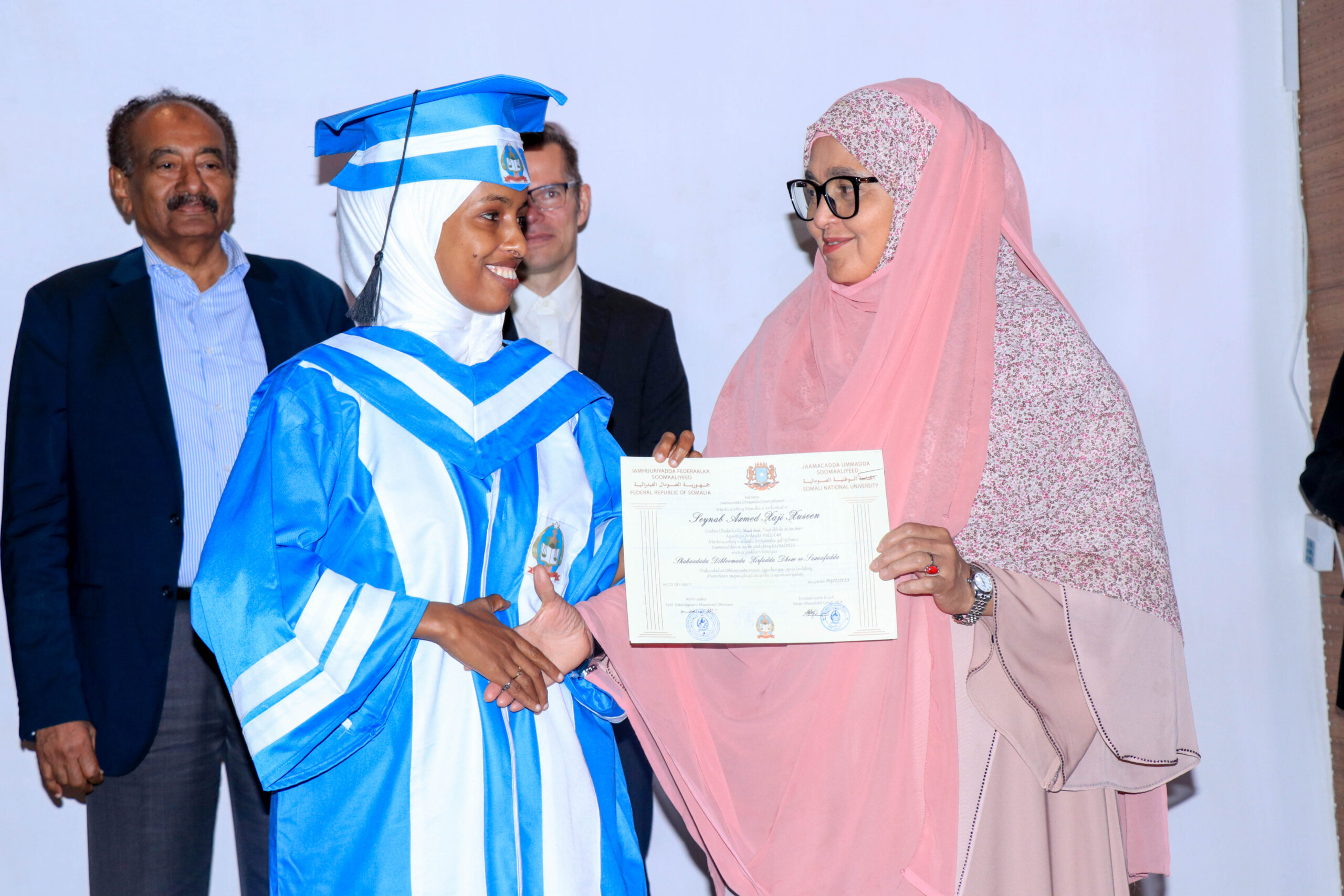 Ugu danbayn munaasabada waxaa hadiyado lagu gudoonsiiyay masuuliyiin ka socotay Jaamacadda Tembare ee dalka Finland, IMS iyo FOJO Media Institute oo gacan ka gayatay taageerida iyo soo bixitaanka manhajka qaybta saxaafada Jaamacadda Ummadda Soomaaliyeed, iyo tababarida watiyayaasha shaqeeya.